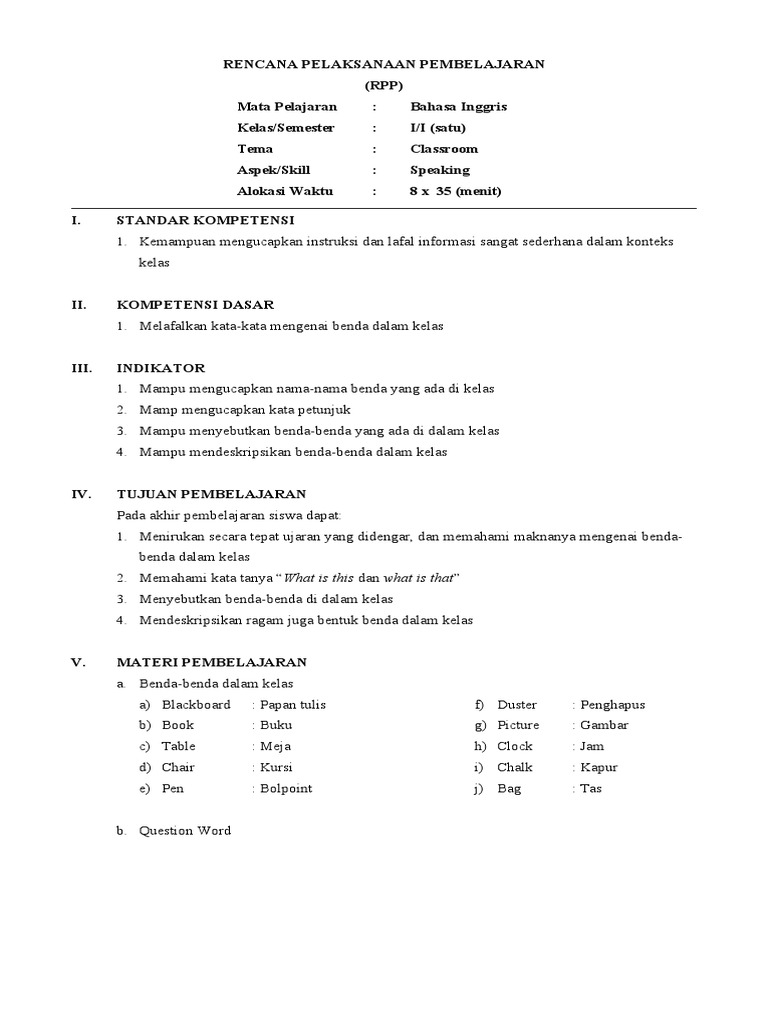 11+ Contoh Rpp Bahasa Inggris Sd Kelas 1 Images. Pada kesempatan kali ini ibi akan membahas tentang rpp bahasa inggris sd kelas 1 kurikulum 2013 demikian yang dapat ibi sampaikan pada kesempataan kali ini, semoga dapat bermanfaat dan dapat dijadikan sebagai panduan mengajar bahasa inggris sd kelas 1 kurikulum 2013. Rpp 1 lembar bahasa inggris.