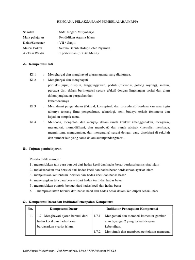 Rpp 1 Lembar Smp Pai Kelas 7 8 9 Semester 1 Dan 2 Kaketik from 1.bp.blogspot.com Rpp disusun berdasarkan serangkaian kd yang dilaksanakan dalam satu kali pertemuan atau lebih. Modul mgmp pai kurikulum 2013 Contoh rpp pendidikan agama islam smp ktsp 2006 revisi baru dan sangat lengkap telah tersedia di blog ini sebagai sarana pendu.