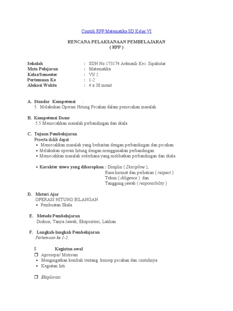 Contoh rpp matematika kelas 5 sd operasi hitung bilangan bulat.